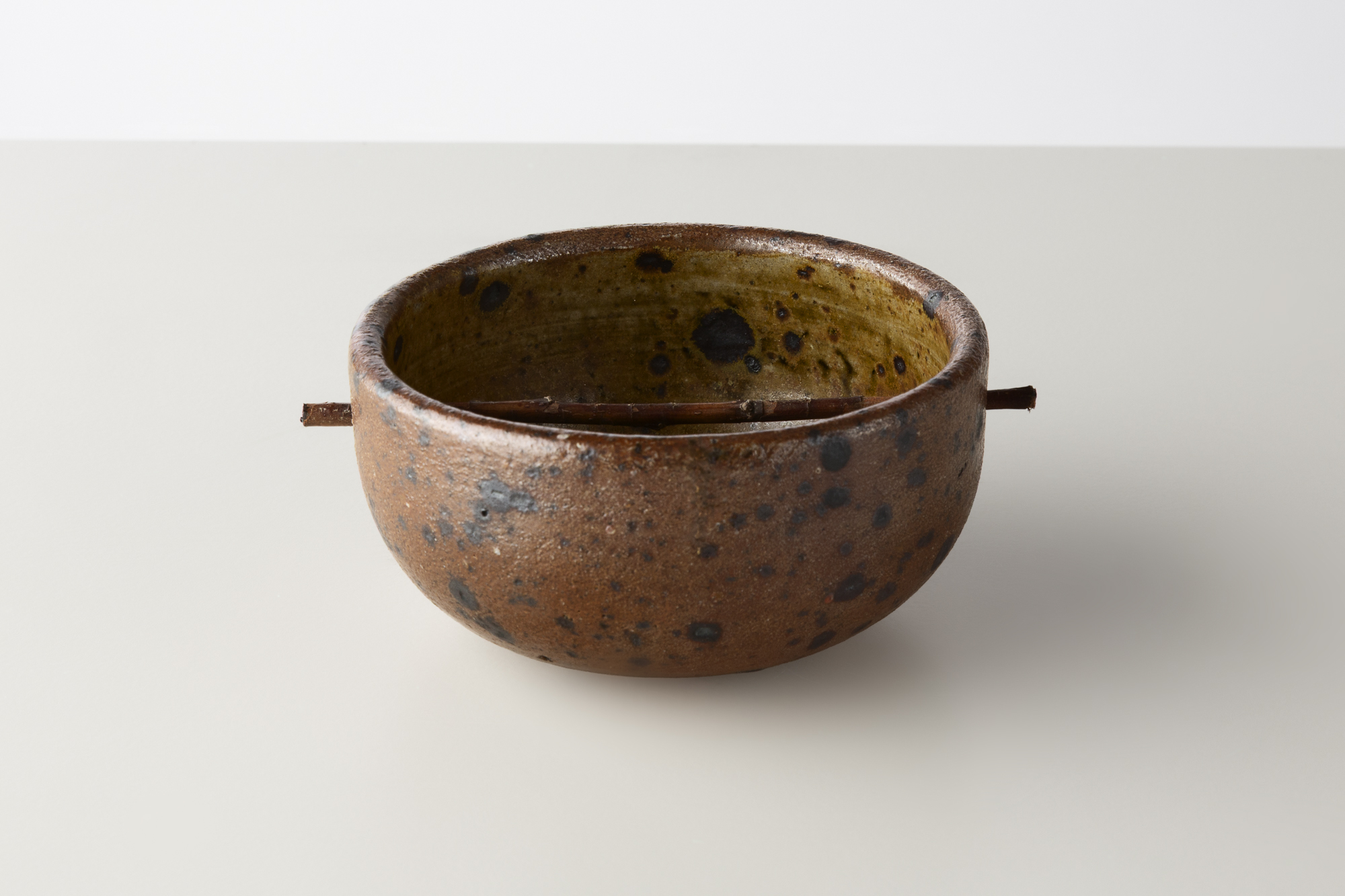 BOWL PIERCED WITH A PIECE OF WOOD