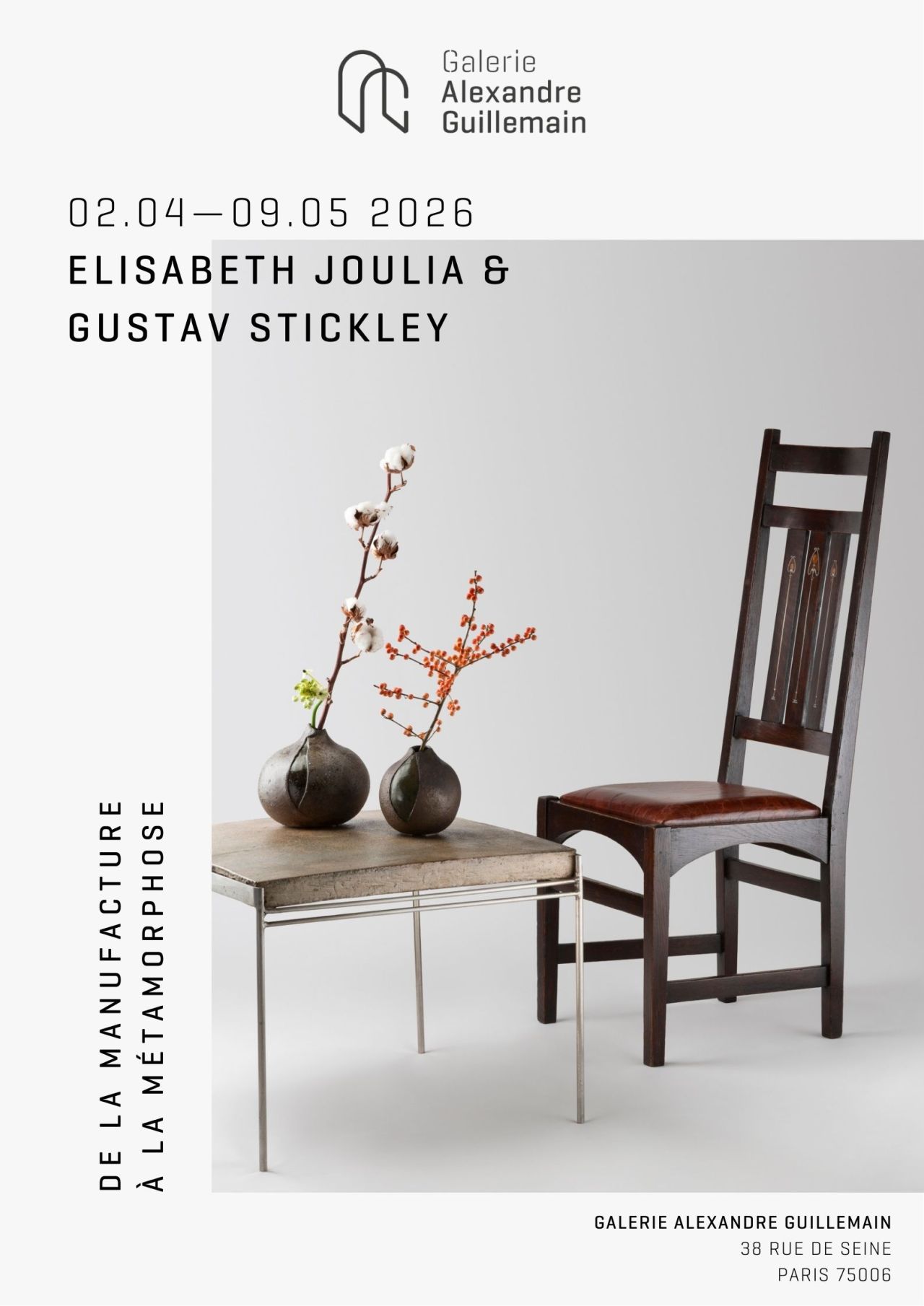 La Galerie Alexandre GUILLEMAIN a le plaisir de vous recevoir à l’occasion de l’exposition « De la manufacture à la métamorphose ».