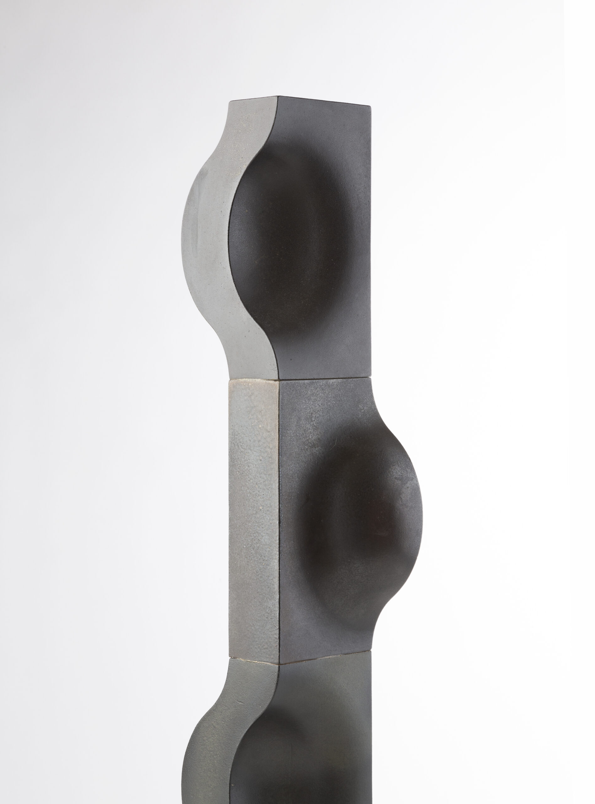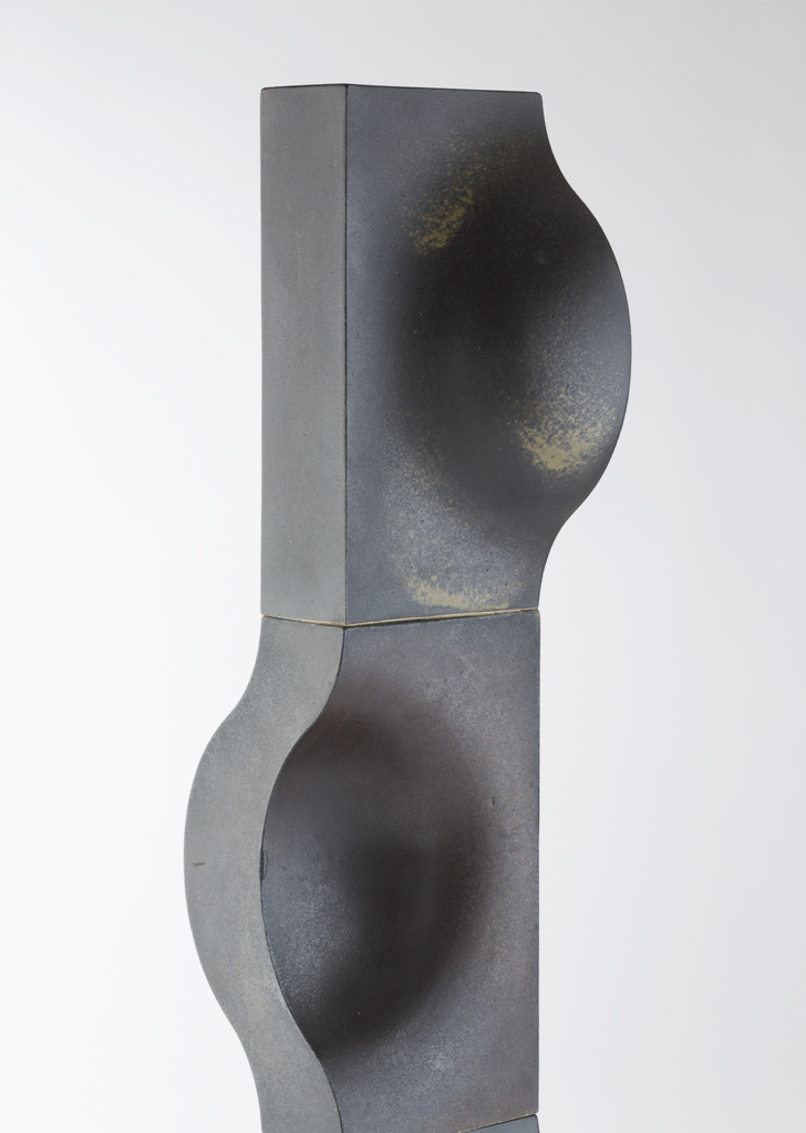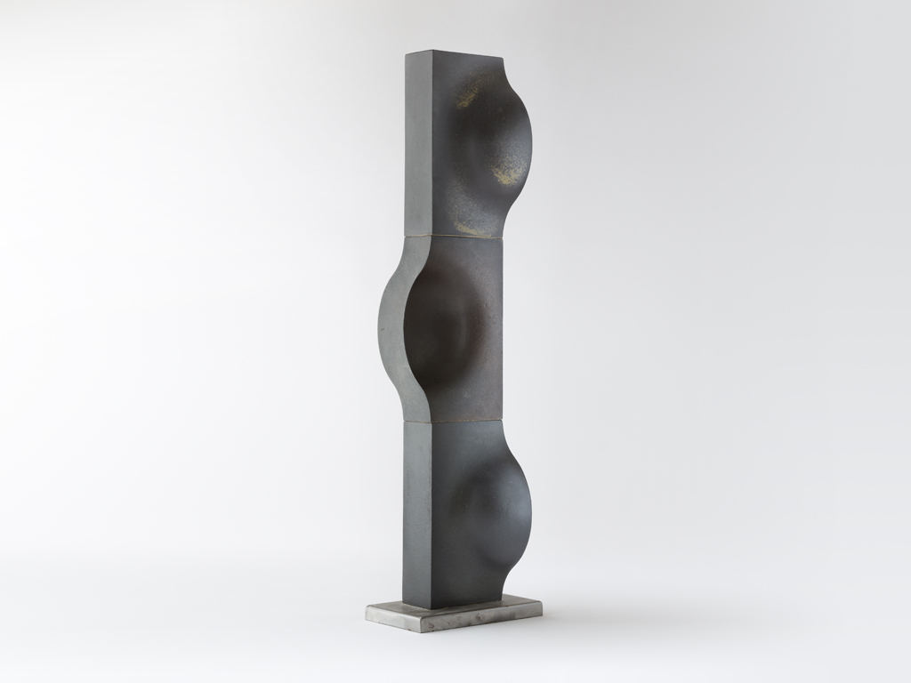 Sculpture en grès noir signée Michel Lévêque (1971), composée d’éléments modulaires aux courbes sculpturales. Une pièce unique mêlant fonctionnalité et œuvre d’art, typique de l’esthétique expérimentale et organique du design des années 1970.